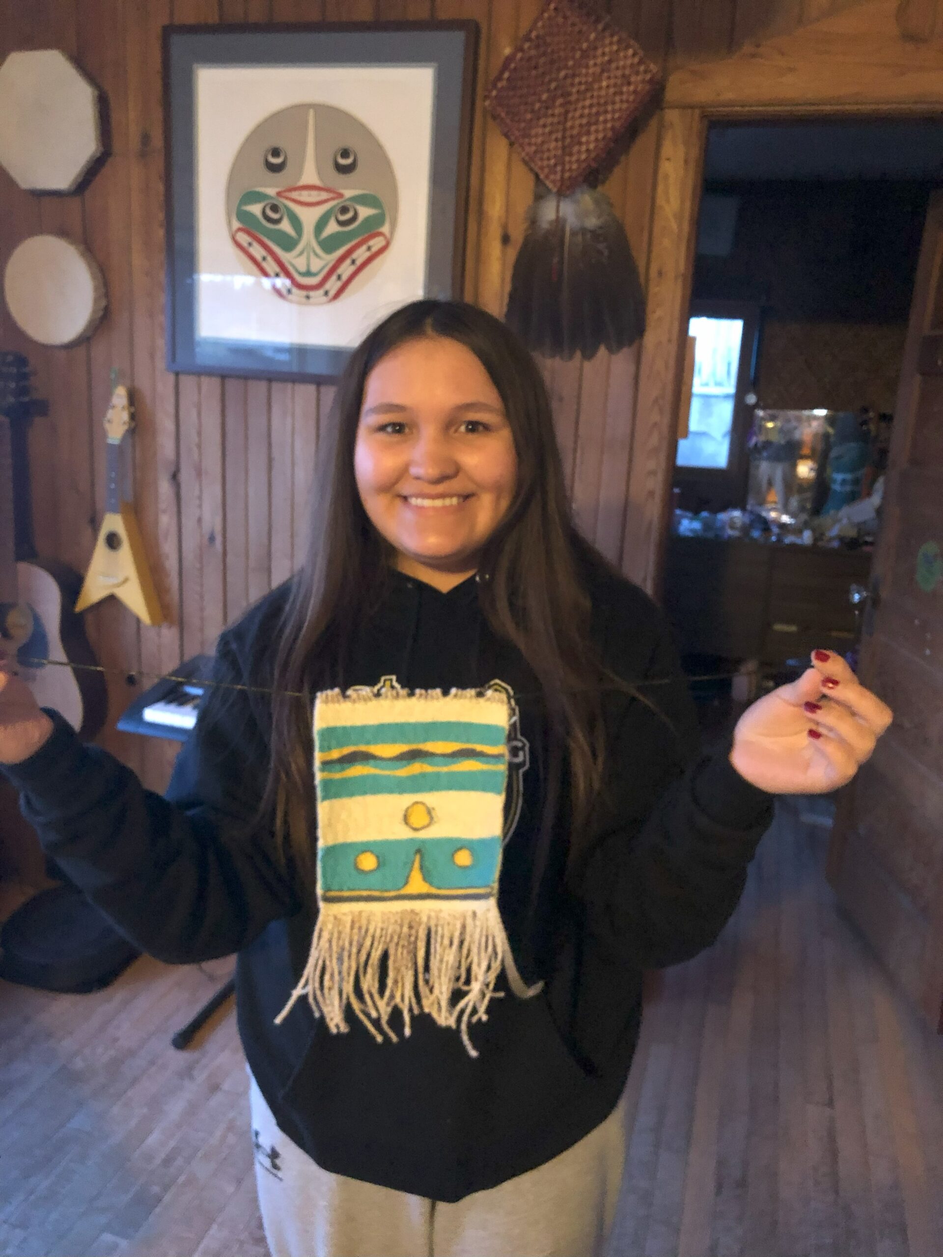 Nora-Jane is a 16 year old Haida artist from Masset who is interested in Naxiin weaving. She loves working with textiles and has been doing so since she was 13. The money she received from the YVR Art Foundation will go towards purchasing materials needed to continue with her weaving.